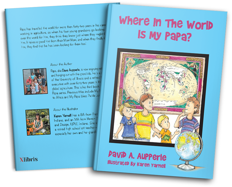 Papa has travelled the world for more than forty-two years in his career working in agriculture, so when his four young grandsons go looking all over the world for him, they think they know just where they might find him. It takes a good hint from their MomMom, and when they finally find him, they find that he has been looking for them too!